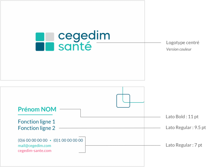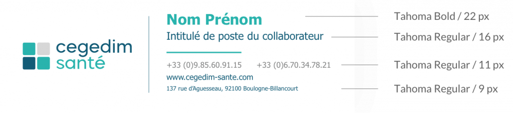 La signature d’e-mail permet de véhiculer et de renforcer l’identité de marque Cegedim Santé et d’identifier plus facilement l’interlocuteur.